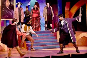 Whimsical carnival colors, futuristic art and signatures from the restoration period come together in the set design for "The Rover."